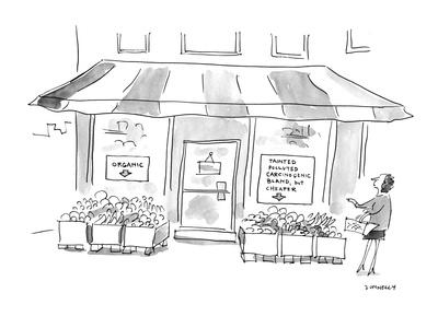 Woman Standing Outside Of Grocery Store One Signs In Store S Window Read Cartoon Premium Giclee Print Liza Donnelly Allposters Com